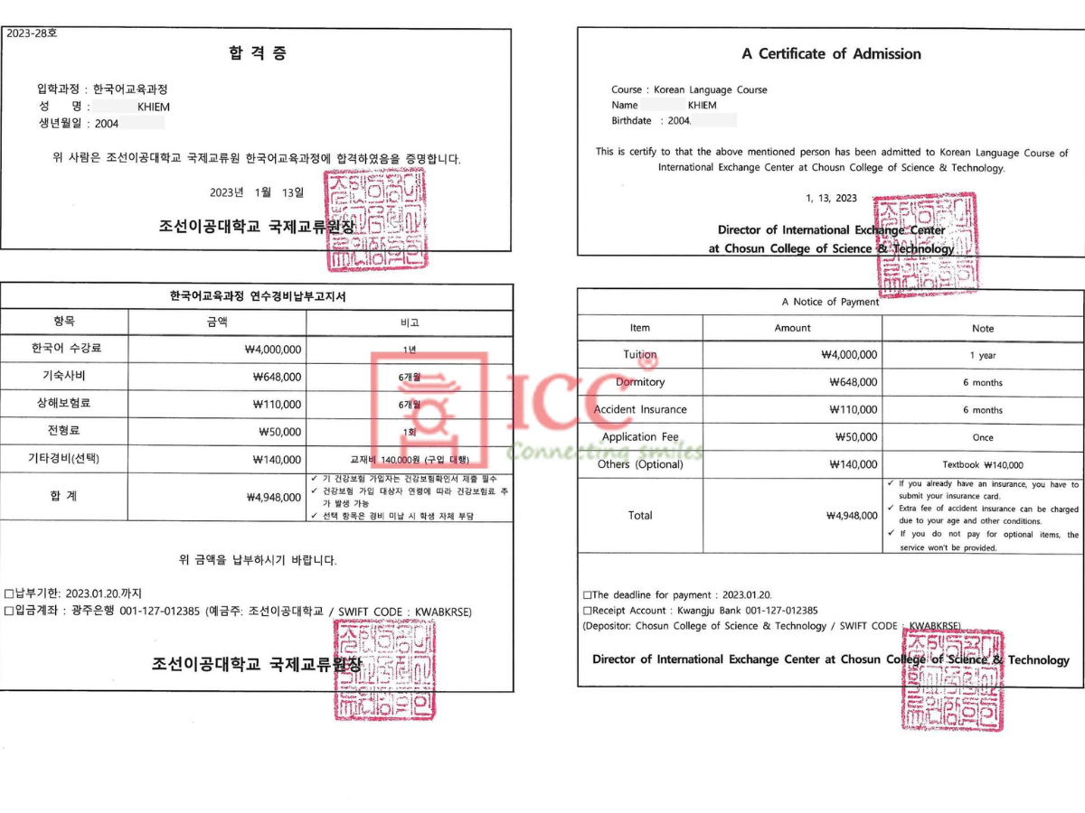 Thông thường, bạn cần thanh toán đầy đủ theo invoice để được trường cấp thư mời. Vì vậy, đây là bước quan trọng trong quá trình hoàn thiện hồ sơ du học Hàn Quốc.